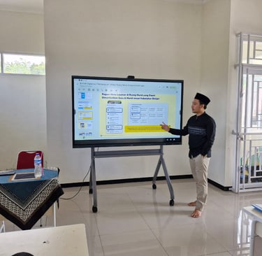 Sesi pertama diisi oleh Ustadz Awaludin, S.E. dengan materi “Pembelajaran Smart Board dan Pengenalan Rumah Pendidikan”. Dalam penyampaiannya, Smart Board diperkenalkan sebagai media pembelajaran interaktif yang mampu meningkatkan keterlibatan dan minat belajar peserta didik. Media ini memungkinkan guru menyajikan materi secara visual dan multimedia, melakukan interaksi sentuhan langsung, serta memanfaatkan penulisan digital dan video pembelajaran.
